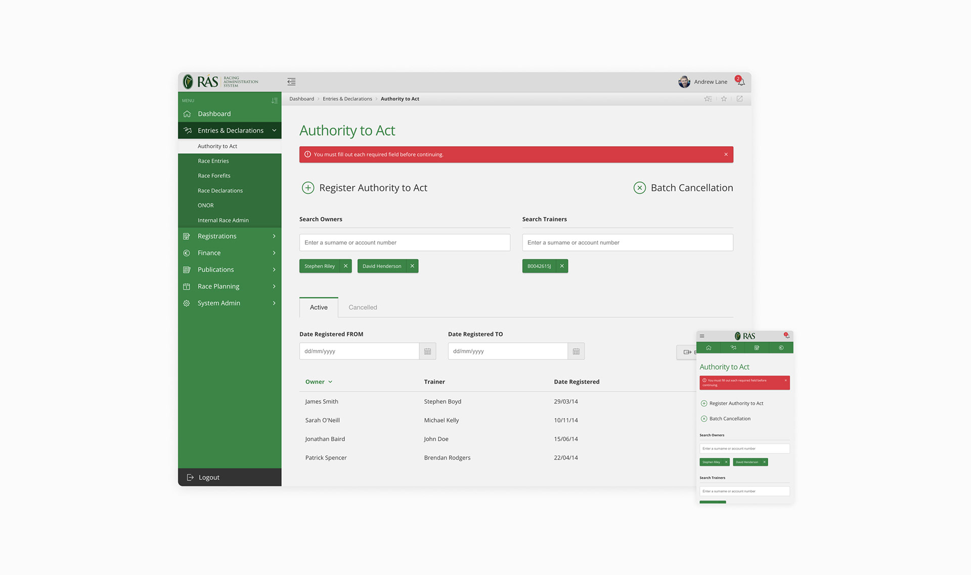 Horse Racing Ireland — Self service responsive web application for horse racing administration